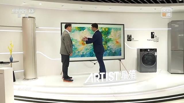 为了实现国际化战略,长虹在距离广州一小时车程的中山市专门建立了一个出口基地,用前店后厂的模式加快向海外出口。一走进展厅,记者首先就被一款115寸的巨幅电视吸引。它不仅大,而且聪明,内置了人工智能大模型,记者体验了一下它的AI绘画功能。