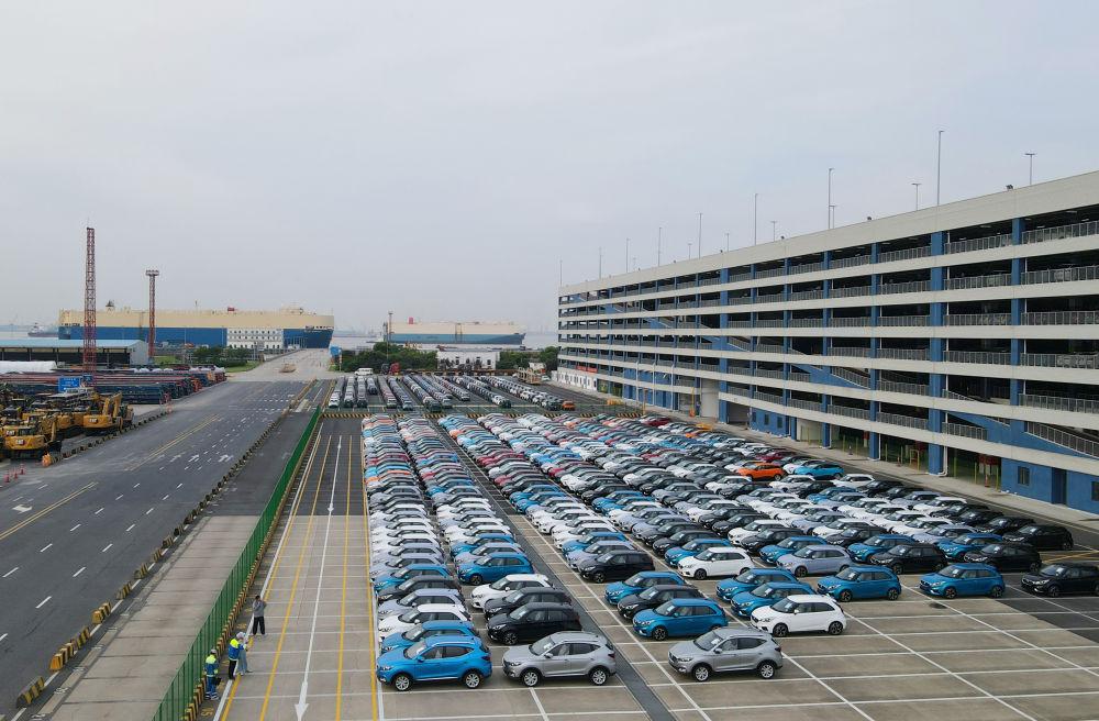 上海外高桥港区海通国际汽车码头上一片忙碌,每天有约3000辆汽车从这里出发,销往全球100多个国家和地区。