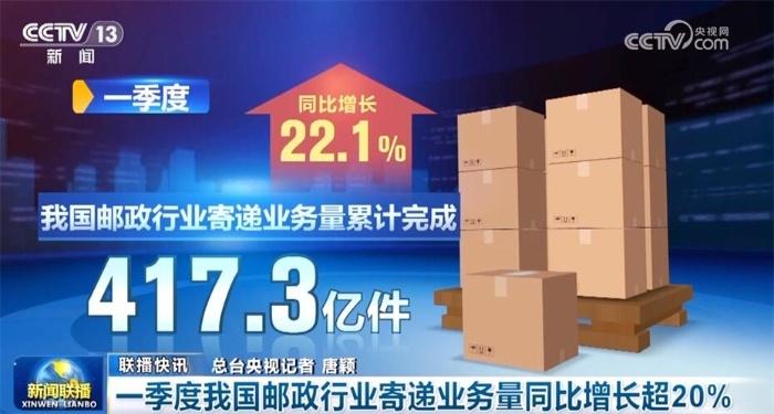 记者从国家邮政局获悉,一季度,我国邮政行业寄递业务量累计完成417.3亿件,同比增长22.1%。其中,快递业务量累计完成371.1亿件,同比增长25.2%。一季度,快递业市场规模持续扩大,发展势头持续向好。