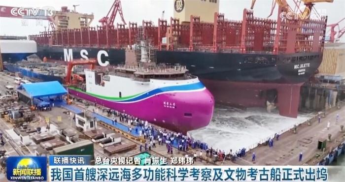 我国首艘深远海多功能科学考察及文物考古船正式出坞