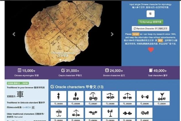 从《说文解字》到《六书通》,再到《金文编》和《甲骨文编》,西尔斯用了20年时间,将其中的古汉字数字化。2002年,他创办的汉字字源网正式上线。这个收录了近10万个古代中文字形的全球最大开放汉字字源库,吸引了来自世界上170多个国家与地区的用户。