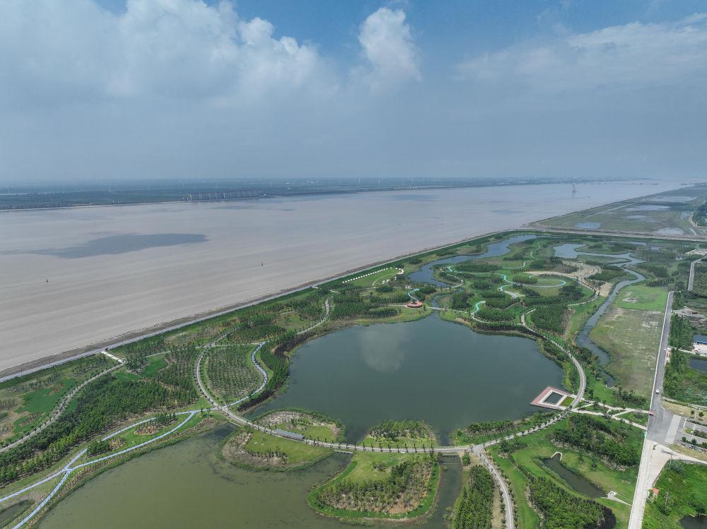 这是江苏省启东市滨江生态绿廊(2023年7月24日摄,无人机照片)。新华社记者 季春鹏 摄
