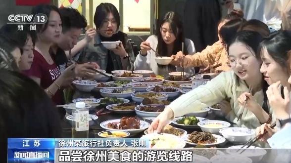徐州某旅行社负责人 张刚:我们对旅游线路也做了相应的调整,除了游览徐州丰富灿烂的两汉文化和一些红色景点之外,我们特意增加了品尝徐州美食的游览线路。