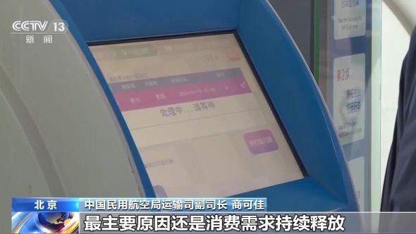 中国民用航空局运输司副司长 商可佳:今年“五一”期间,全国民航预计发送旅客1010万人次,同比增长9.5%。民航客运市场的火爆最主要原因还是消费需求持续释放,运输生产回归自然增长,全面跨入提质增效阶段。