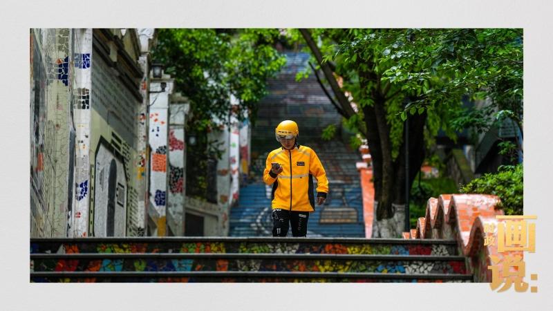 △枣子岚垭正街,急匆匆的快递“小哥”跑过五彩瓷砖台阶。