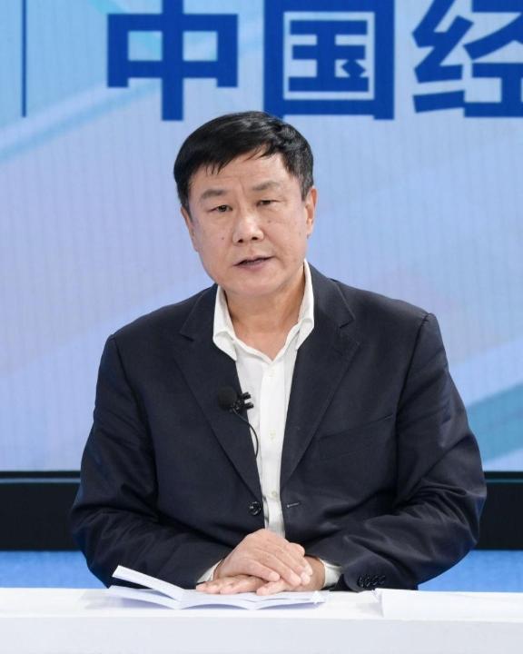 国家统计局国民经济综合统计司副司长、新闻发言人王冠华在中国经济圆桌会录制现场交流发言。新华社记者 李贺 摄