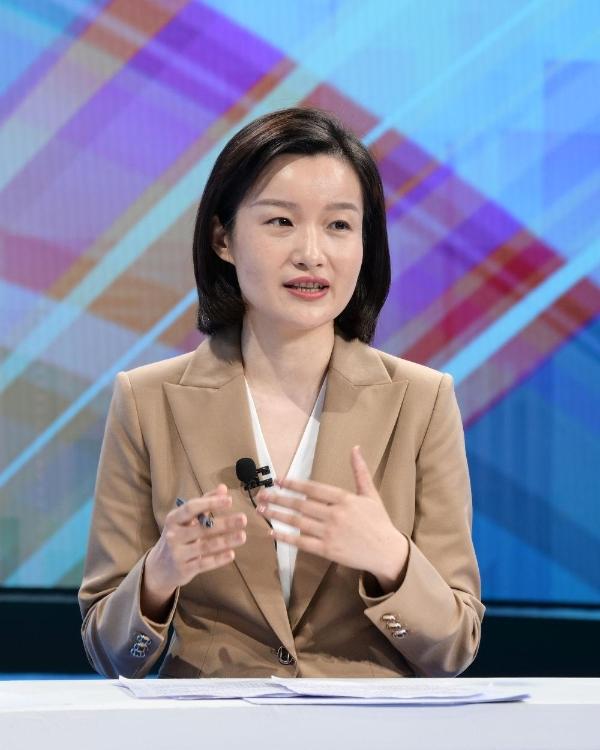国家发展改革委国民经济综合司副司长李慧在中国经济圆桌会录制现场交流发言。新华社记者 李贺 摄
