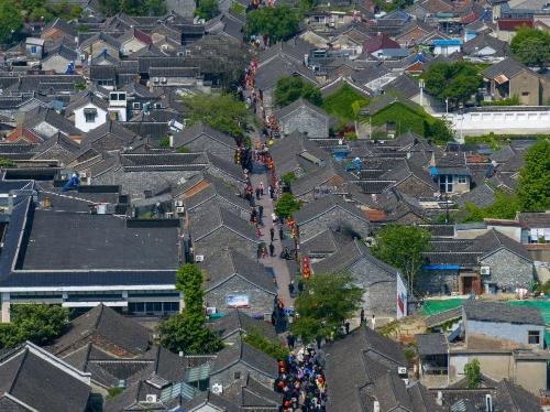这是4月22日拍摄的扬州东关街(无人机照片)。新华社记者 李博 摄