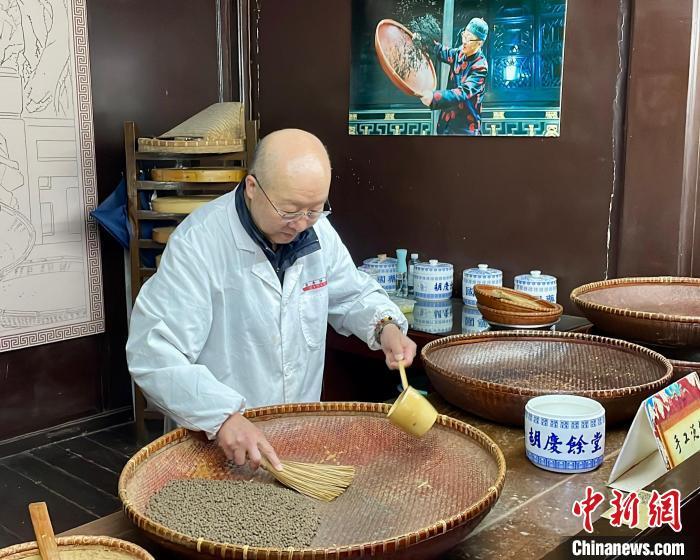 4月24日,胡庆余堂中药博物馆,非遗大师展示传统中药炮制技艺。张斌 摄