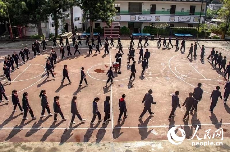 课间,云南宝丰中心完全小学学生们踩着鼓点节奏踏歌起舞。人民网记者 刘怡摄