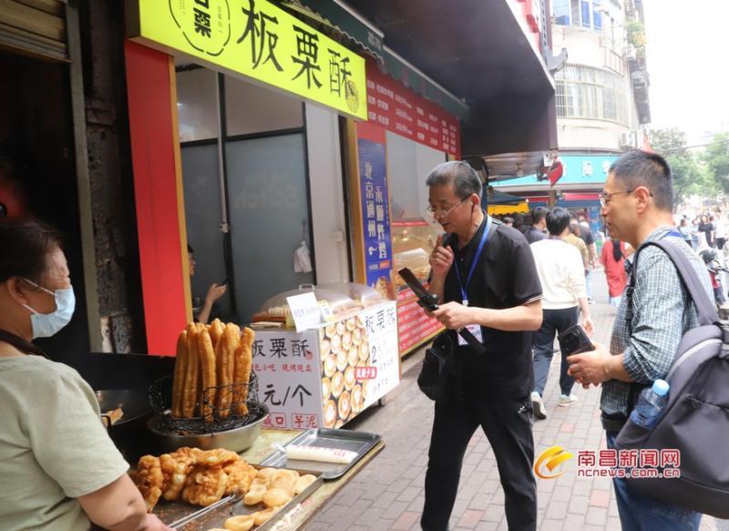 “欢迎来到南昌网红老街大士院……”此次受邀前来的网络“大咖”“璟公主”作为采风团的一员来到南昌网红老街——大士院,一边直播向网友们介绍南昌街上的南昌美食,一边仔细探访这里的烟火气。“我是第一次来这里,这里就像是小时候的家门口的那条满是小吃的街巷,充满了人间烟火味道。”“璟公主”告诉记者,“我要好好逛逛,看看这里。”与“璟公主”一样对南昌小吃充满兴趣的采风团排着队品尝白糖糕、煎饼等南昌特色美食。“白糖糕香甜可口,活动好玩有趣。”南昌晚报《阳光少年》小记者、南昌市豫章教育集团学生胡泽坤一边与妈妈刘珊珊分享美食,一边与记者聊天。