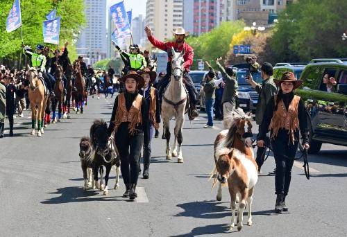 4月30日,一支庞大的巡游队伍亮相新疆乌鲁木齐市友好商圈。作为“五一”文化展演活动的一部分,乌鲁木齐市通过马队、驼队、花车等巡游的方式,展示城市的发展活力和独特魅力。