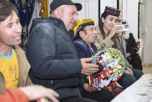 在位于新疆塔什库尔干塔吉克自治县瓦恰乡夏布孜喀拉村的家中,艾尔开牙·多力开用手机记录欢聚时刻。