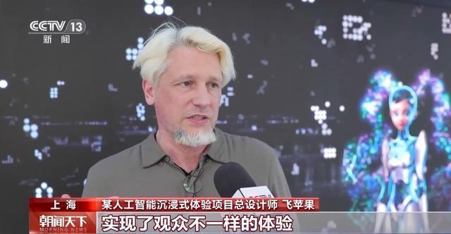 上海某人工智能沉浸式体验项目总设计师 飞苹果:我在这里面就可以做到,无论多少个观众,每个人有一个属于自己的人工智能,实现了观众不一样的体验。