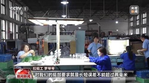 在素有“中国玻璃器皿之都”美誉的山西祁县,人工吹制玻璃器皿的手艺被认定为省级非遗。一团团红彤彤的玻璃溶液,在数十位师傅手中传来传去,吹好杯身的毛坯,传递到拉挺师傅罗琴琴手中。
