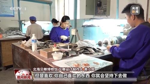 北海贝雕博物馆贝雕设计制作人 黄小凤:刚开始的时候学的话也比较容易受伤,但是喜欢,你自己喜欢的东西,你就会坚持下去做。