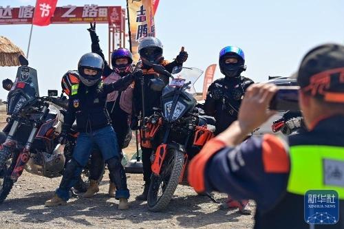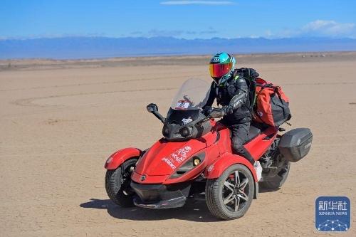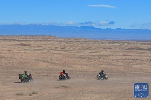 在新疆克拉玛依市乌尔禾区,车友在无人区体验越野骑行(5月2日摄)。