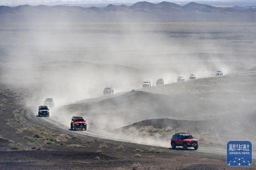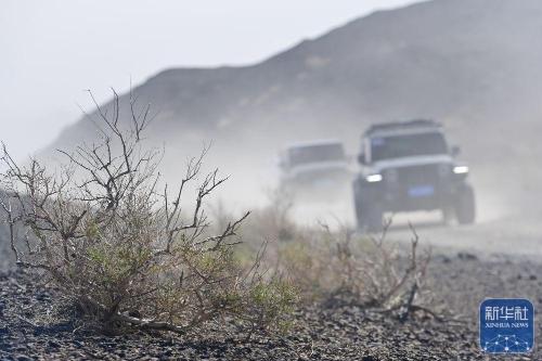 在新疆克拉玛依市乌尔禾区,车友驾驶越野车穿越无人区(5月2日摄)。