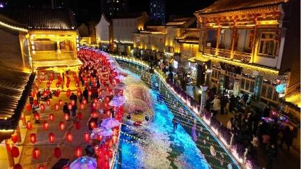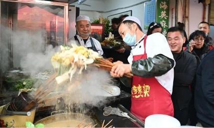 天水市秦州区的天水名优小吃城一麻辣烫店,商家为游客加工麻辣烫。新华社记者 范培珅 摄