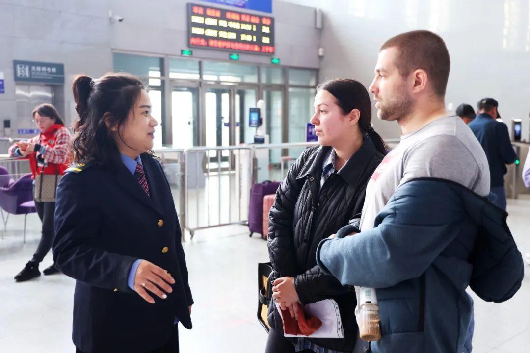 绥芬河站更是在国际联运的一线发挥着不可或缺的作用。哈尔滨局集团公司针对假期绥芬河口岸外籍跨境游旅客增多的实际,组织翻译员工成立志愿服务小队,为外国旅客提供双语服务。