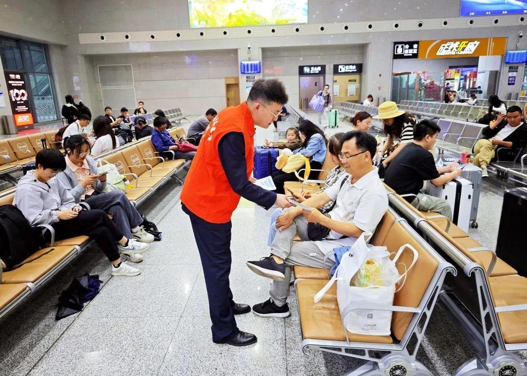 工作人员通过发放宣传折页、开展文明知识问答等方式,倡议并引导广大旅客增强文明意识、提升文明素质。活动共发放宣传折页1500册、开展文明知识问答200人次,营造了文明有礼、和谐有序的站车环境。