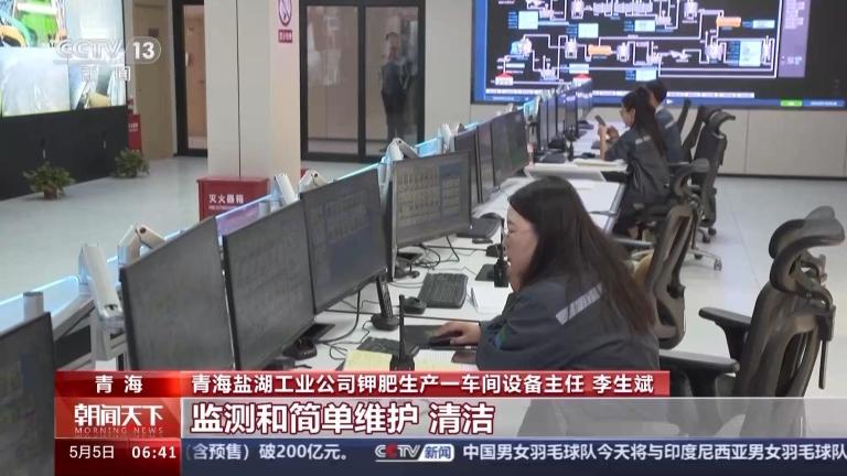 青海盐湖工业公司钾肥生产一车间设备主任 李生斌:主要还是实现远程控制和监测,岗位人员只是最基本的监测和简单维护、清洁。