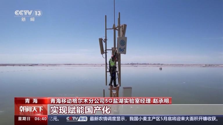 总台央视记者 孙蓟潍:我现在是在亚洲最大的盐湖——察尔汗盐湖,这里曾经是一片无人区,随着信号升格行动的展开,这里已经覆盖了5G网络。