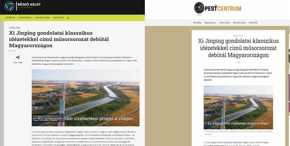 此外,当地时间5月4日,匈牙利东部生活网、匈牙利佩斯中心网、匈牙利西峰网、南佩斯在线网等对《平“语”近人——习近平喜欢的典故》(国际版)即将播出的消息进行了报道。匈牙利东部生活网主要以介绍亚洲以及中东欧地区内容为主,在匈牙利拥有广泛的受众群体。匈牙利佩斯中心网是布达佩斯地区最主要的商业媒体网站。