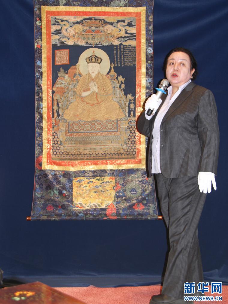 罗布林卡管理处文物科科长色莉玛带来了“大慈法王唐卡”。