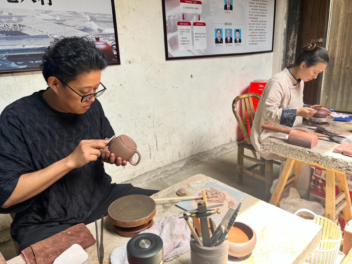 工艺美术师正在制作紫砂壶(央广网见习记者 孙俊 摄)