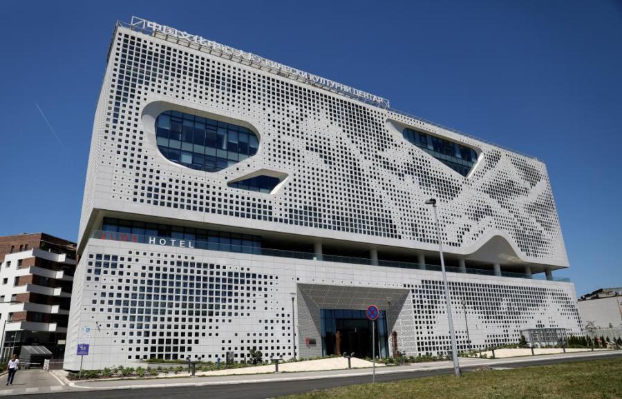 这是2024年4月28日在塞尔维亚贝尔格莱德拍摄的中国文化中心。新华社记者 李颖 摄