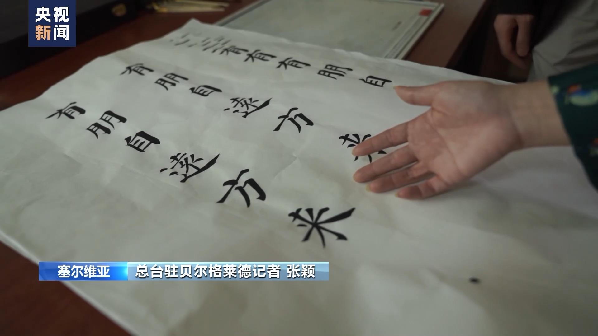 总台记者 李耀洋:这里印有中文和塞尔维亚语“有朋自远方来”,它来自于孔子的《论语》,这字是出自哪个大家的手笔呢?
