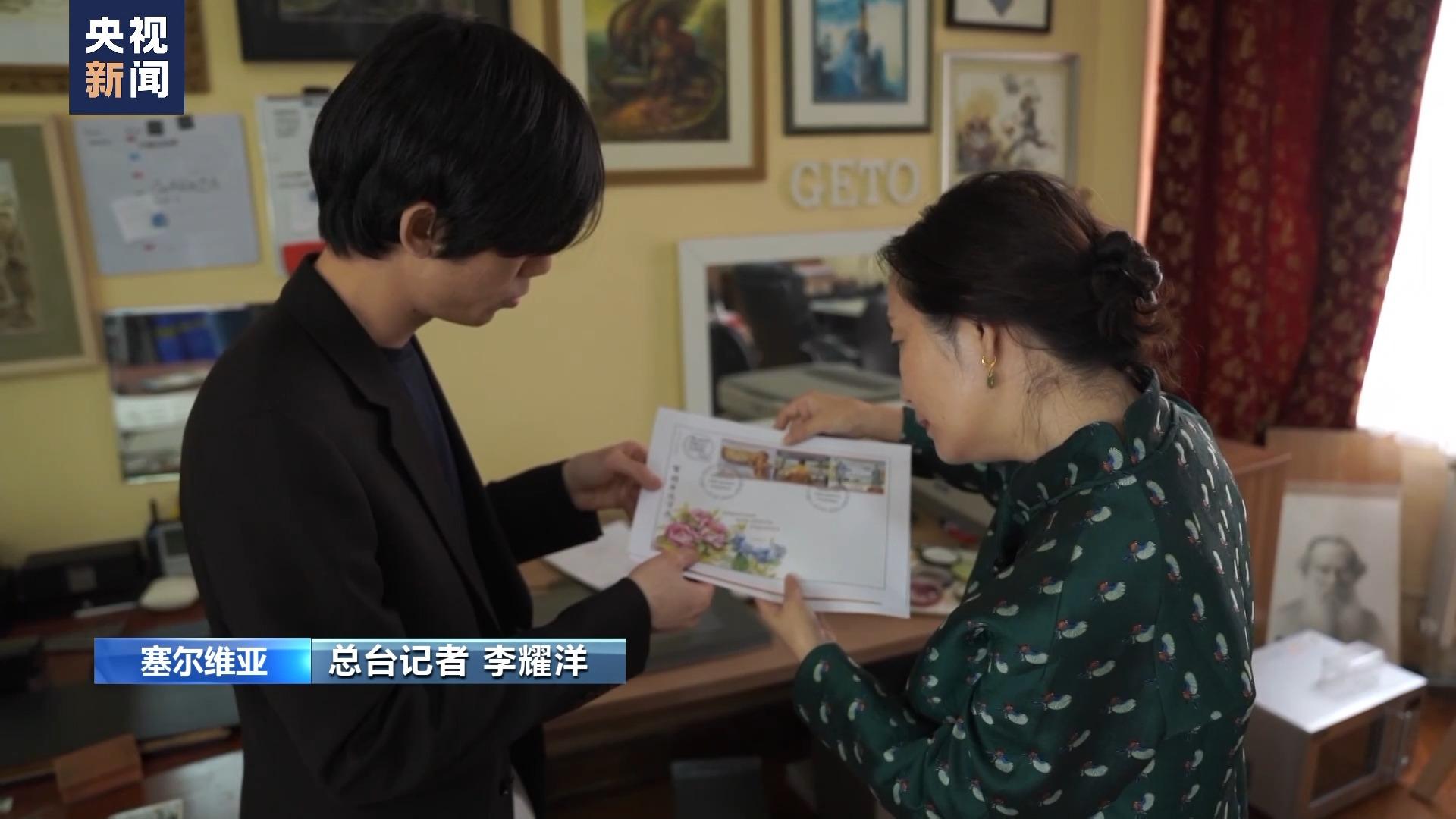 总台驻贝尔格莱德记者 张颖:这三枚邮票分别代表历史对话、共建“一带一路”、文化交流。