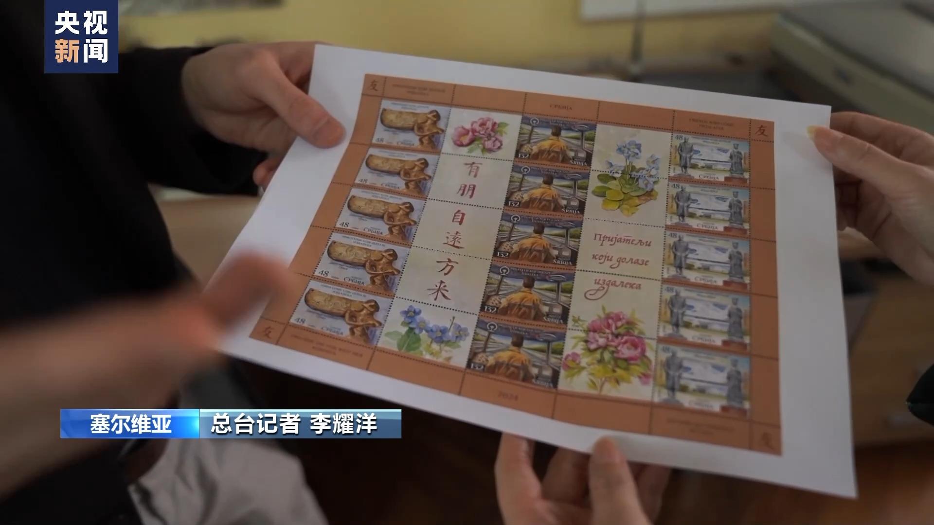总台记者 李耀洋:我手上这份是刚制作完成的纪念邮票,还透着纸墨香。邮封上除了花朵图案,特别醒目的是中文和塞尔维亚语的“有朋自远方来”。邮票共有3套15枚。这么有纪念意义的邮票,究竟有多少道关键工序呢?背后的故事自然要从邮局说起。