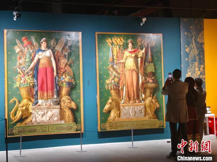4月13日,观众拍摄挂毯模板,左图为“亚细亚”,右图为“欧罗巴”。苏婧欣 摄