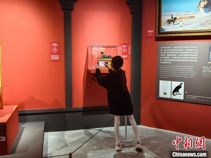 4月13日,一名中国小朋友用手机拍摄保护罩内的文物。苏婧欣 摄