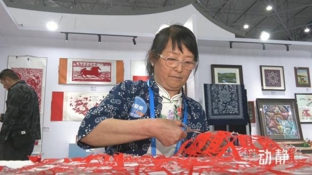 李爱荣来自河南省新乡市,是国家级非遗传承人。在她的带领下,当地开展剪纸专项培训300多场,累计培训学员3000多名,带动农户增收致富。这次大赛,她专门带来了自己的剪纸作品。