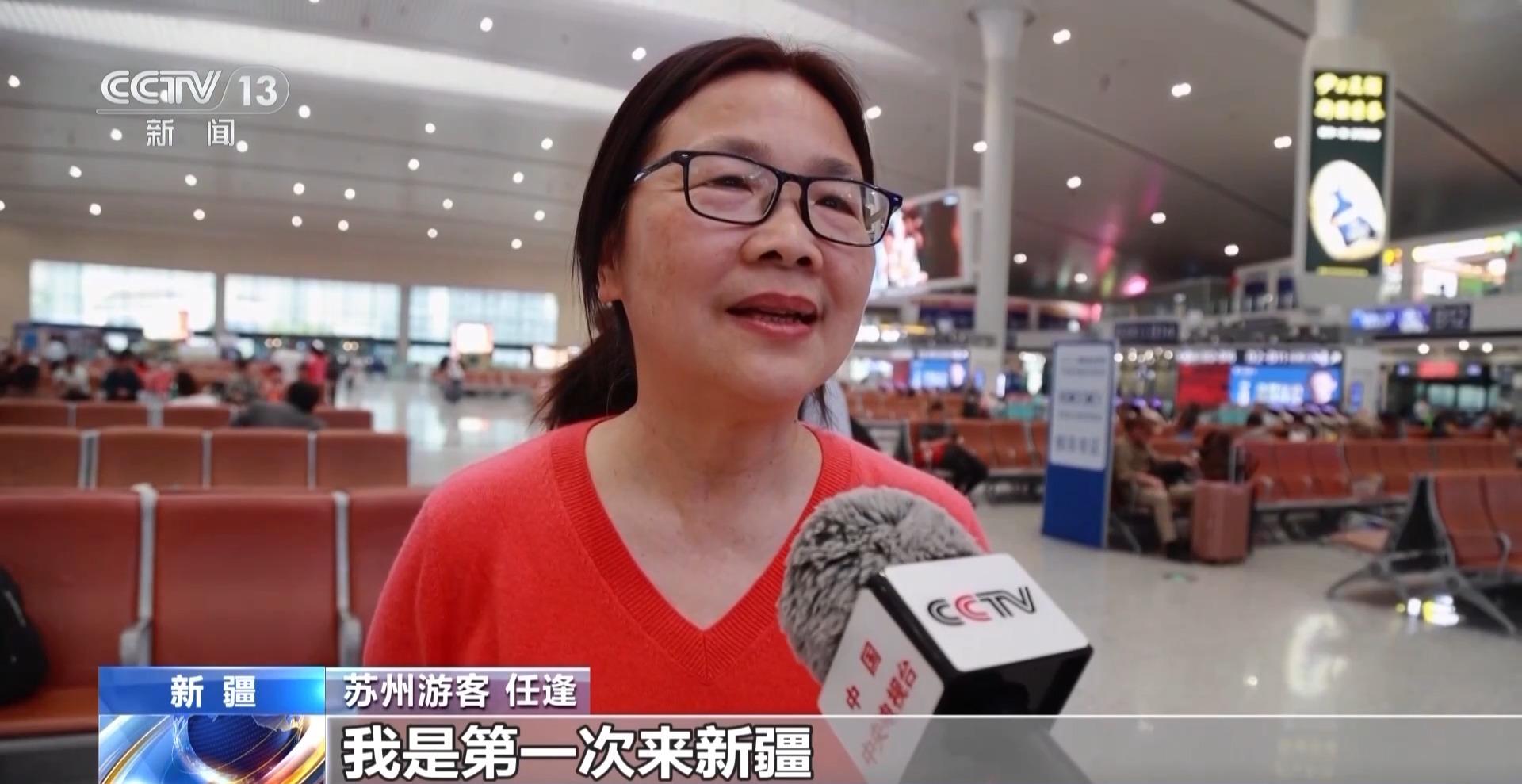 苏州游客 任逢:我是第一次来新疆,为了这次旅行我们已经考虑了两三年了,“天山号”能够带着我玩遍整个南北疆的旅游景点。这个很方便,我很期待这次旅行。