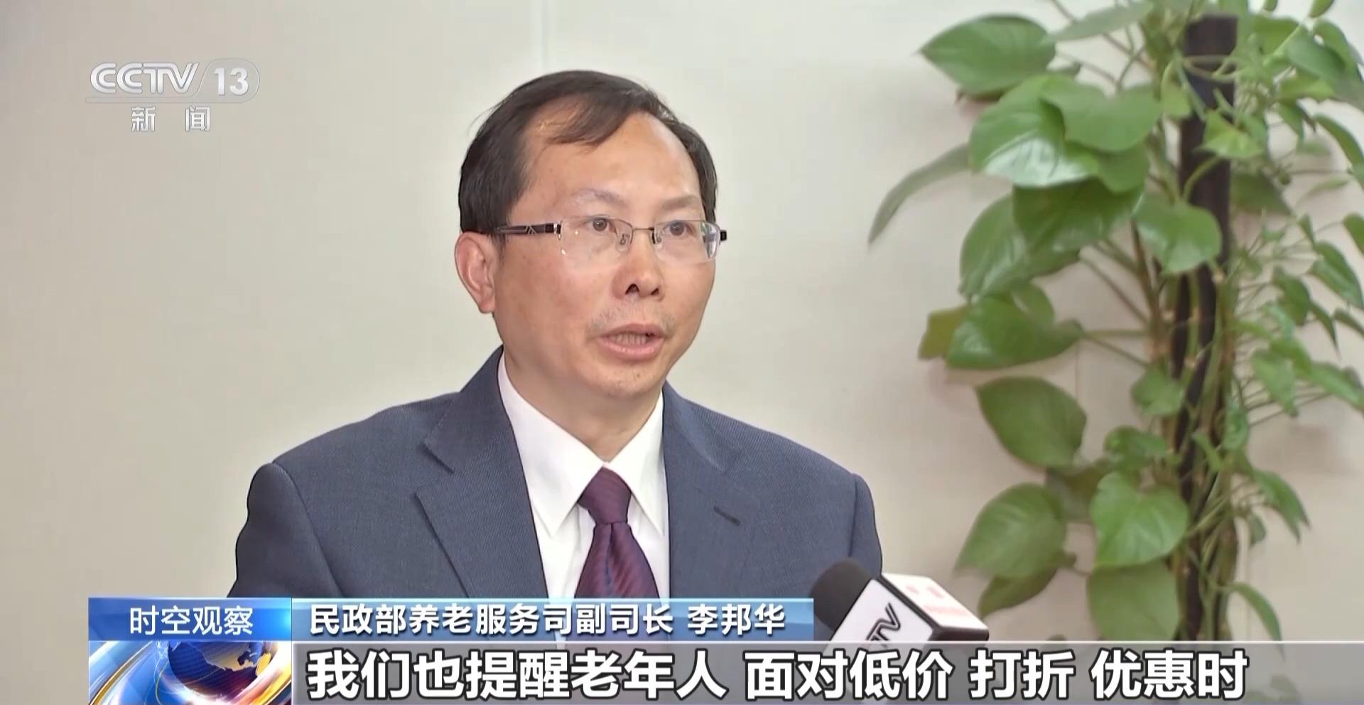 民政部养老服务司副司长 李邦华:我们也提醒老年人,面对低价、打折、优惠时,也要保持谨慎,选择最适合自己的交费方式。尤其是要提高风险防范意识,不要相信那些投资返利、高额回报的承诺,自觉远离非法集资。