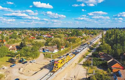 在匈塞铁路项目现场,铺轨机正在塞尔维亚边境的苏博蒂察进行铺轨作业。孙敢勋 摄