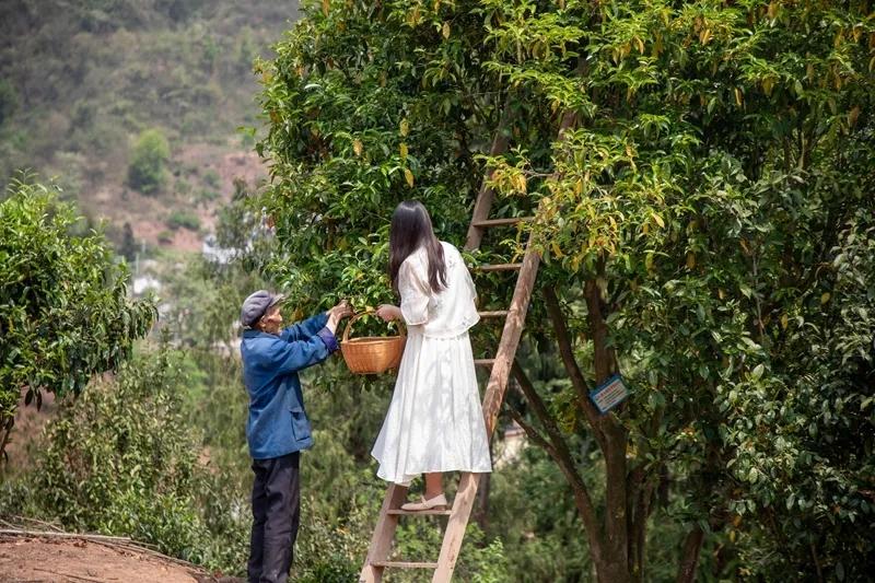 图为2024年4月,贵州省毕节市七星关区亮岩镇太极村村民在采摘古树茶。七星关区融媒体中心供图
