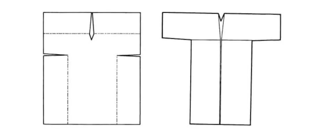 古人制衣倡导“物尽其用”的节约工艺理念,湖北江陵马山战国时期一座墓中出土的一件单衣,由织幅约50厘米的独幅方形织物制成,采用“一片式”T字形结构。沈从文在《中国古代服饰研究》一书中称这一制作方式“材料的利用极其充分”。