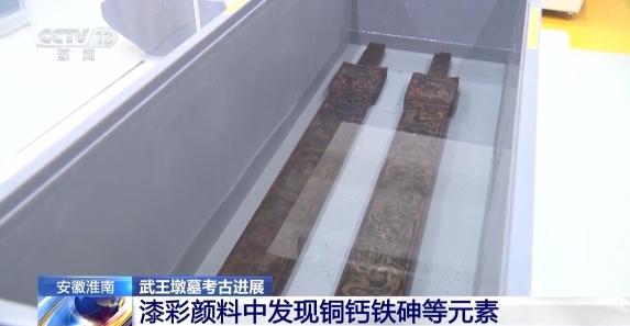据介绍,武王墩墓发掘过程中出土的漆木器,以木胎居多。木质文物长期处于地下饱水环境,木质素和纤维素已发生降解,为避免出土后的木器失水,考古人员用去离子水对漆木器进行浸泡达到保护,除了用离子水,他们还首次使用了“曲面微区X射线荧光光谱仪”,通过高精度扫描进行元素分析,发现漆器颜料中,含有铜、钙、铁、砷等元素,超出了以往的研究认知。