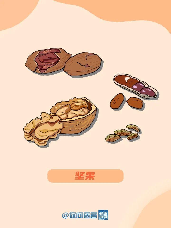 ④坚果: 坚果表面看不出油,但其实坚果中脂肪含量普遍较高。100克混合坚果的脂肪含量有50余克。此外,选择坚果一定要选择原味的,避免盐炒、糖焗或油炸。《中国居民膳食指南(2022)》建议每周吃坚果50~70克,每天吃10克左右即可。