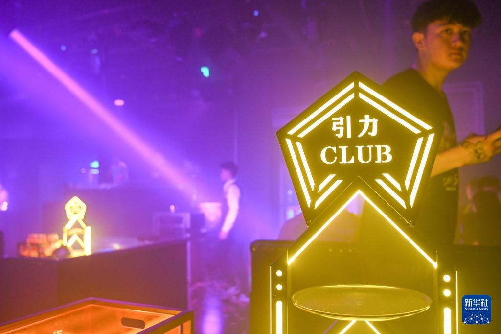 4月19日2时许拍摄的霍尔果斯市的一家酒吧。新华社记者 赵戈 摄