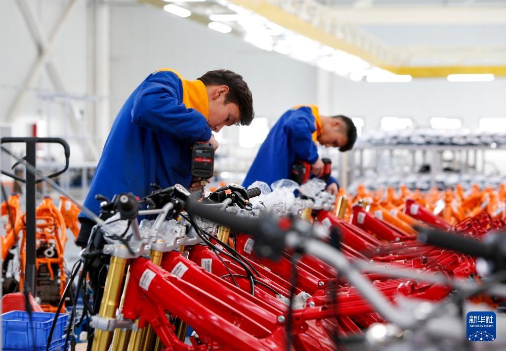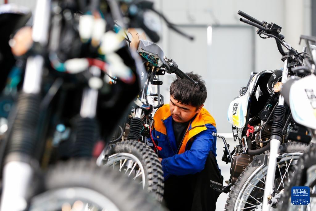 4月18日18时许,在霍尔果斯市一家摩托车生产企业,工人在组装摩托车。新华社记者 陈朔 摄