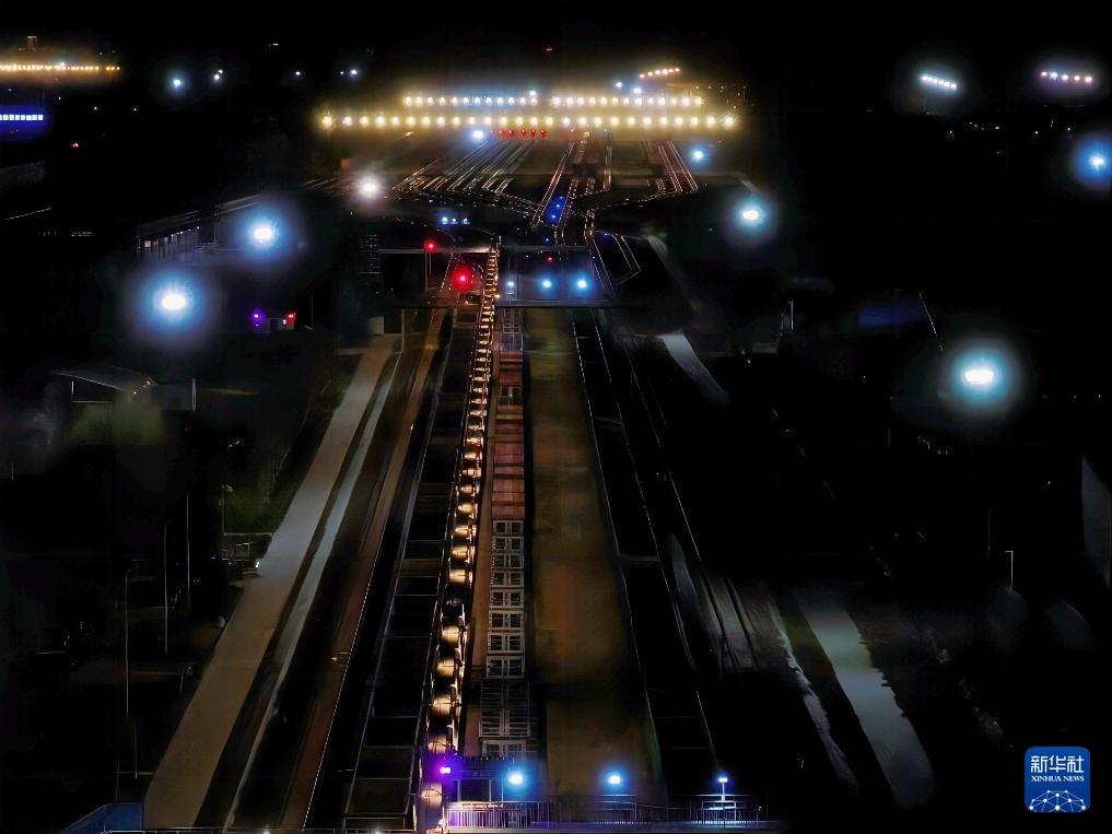 4月18日23时许拍摄的霍尔果斯铁路口岸(无人机照片)。新华社记者 赵戈 摄