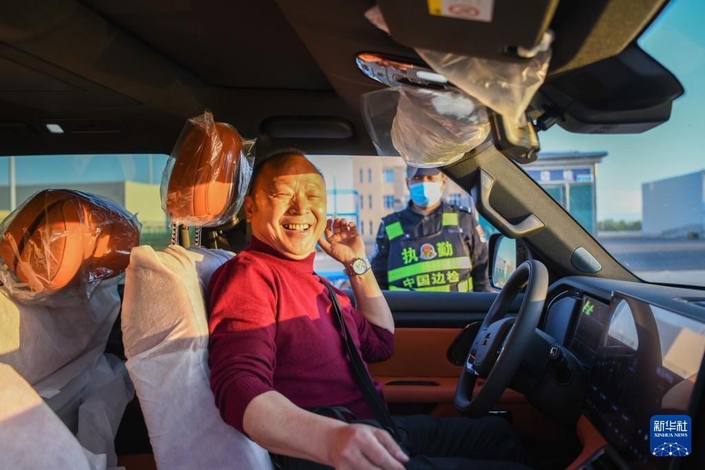 4月18日20时许,在霍尔果斯公路口岸,驾驶员驾驶出口的国产新能源汽车出境。新华社记者 赵戈 摄