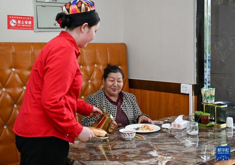 4月18日13时许,客人在霍尔果斯市一家餐厅用餐。新华社记者 陈朔 摄