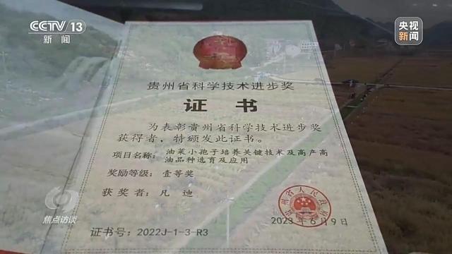 播州区农民遇到的油菜种植难题,很快摆在了凡迪的面前。作为省级技术推广专家,凡迪主要负责全省油菜、大豆等作物的新品种新技术的推广;凡迪参与的一个关于油菜高产技术的科研项目还获得了2022年度贵州省科技进步奖一等奖。凡迪主动请缨组织团队,成功申请揭下了油菜高产的两个榜单。从此,在油菜生长的时节,花果村的农民几乎每个月都会看到凡迪忙碌的身影。